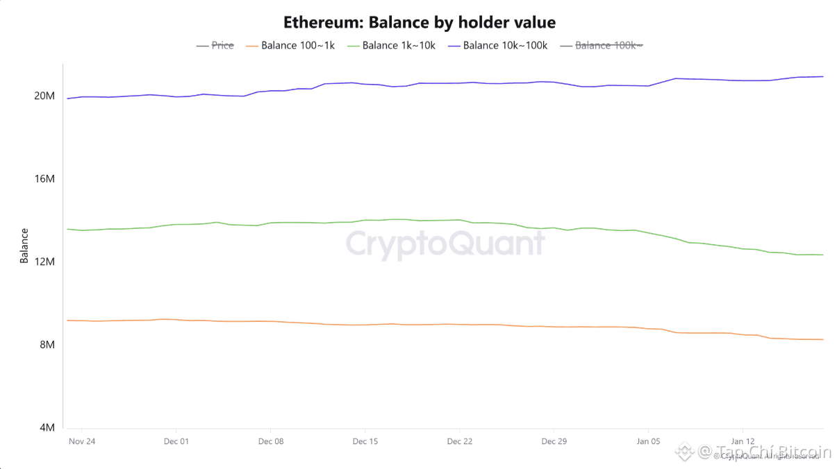 Ở chiều ngược lại, các nhà đầu tư quy mô nhỏ hơn — gồm nhóm nắm giữ 1.000–10.000 ETH và 100–1.000 ETH — vẫn kiên trì phân phối. Chỉ trong vòng một tuần, tổng lượng ETH do các nhóm này nắm giữ đã sụt giảm hơn 510.000 ETH, cho thấy áp lực bán chưa có dấu hiệu hạ nhiệt.