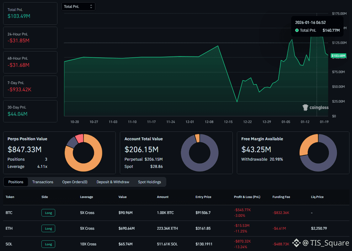 Đang nắm giữ vị thế khổng lồ $448 Triệu USD Short cả BTC, $ETH và $SOL .