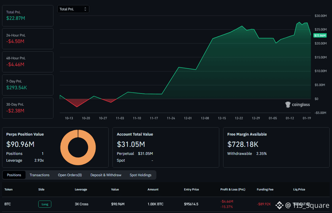 Đang gồng lỗ -$4.6 Triệu USD cho lệnh Long 1,000 BTC.