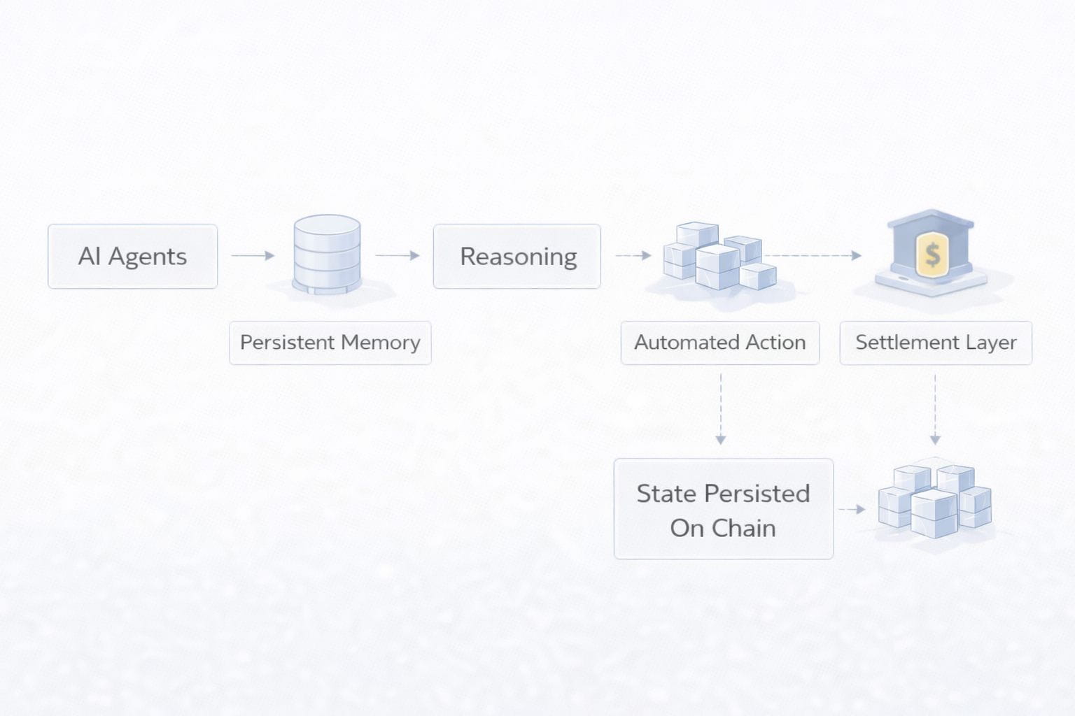 Các tác nhân AI hoạt động thông qua bối cảnh liên tục. Họ quan sát dữ liệu, duy trì bộ nhớ, lý luận về các điều kiện thay đổi và thực hiện hành động mà không cần sự can thiệp của con người. Hạ tầng được xây dựng xung quanh các giao dịch thủ công gặp khó khăn trong việc hỗ trợ hành vi này ở quy mô lớn.