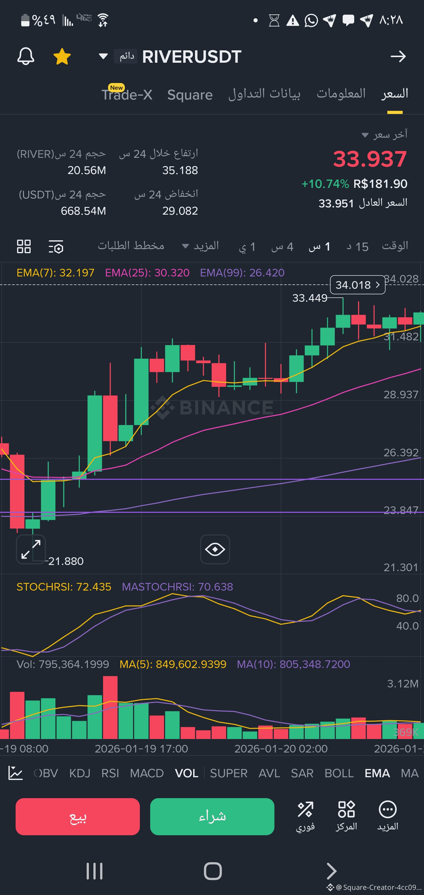نظرة عامة: تم إدراج RIVER في 20 يناير على منصة Coinone الكورية الجنوبية مع زوج تداول بالون الكوري (KRW)، مما زاد من ضغط الشراء، حيث ارتفع حجم التداول اليومي إلى 81.8 مليون دولار (+24.8% خلال 24 ساعة). تشتهر منصات التداول الكورية بتأثيرها الكبير على تقلبات السوق بسبب نشاط المتداولين الأفراد.