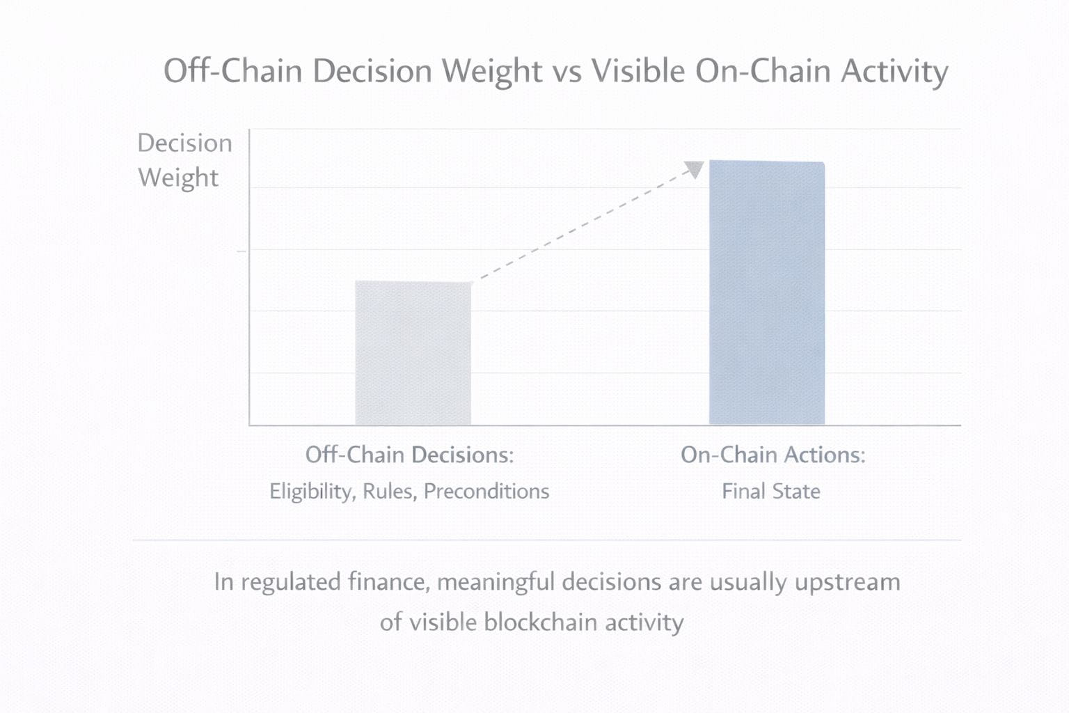 Trong nhiều chuỗi khối, sự mơ hồ được chấp nhận sớm và được giải quyết sau. Các sự kiện được ghi lại. Các hành động được ghi chép. Ý nghĩa được tái tạo sau đó bởi các chỉ số, công cụ phân tích, kiểm toán viên hoặc đội ngũ pháp lý. Điều này tạo ra hoạt động nhanh chóng, nhưng nó cũng tạo ra một đuôi dài của việc diễn giải.