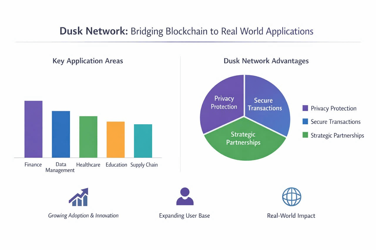 Mạng Dusk phân biệt mình với các giải pháp blockchain khác bằng cách áp dụng công nghệ vào các ngành cụ thể như tài chính và quản lý dữ liệu. Mạng Dusk đã tạo ra các sản phẩm và dịch vụ không chỉ cung cấp sự riêng tư cho người dùng mà còn bảo vệ người dùng khỏi các rủi ro an ninh giao dịch tài chính; cả hai điều này đã trở nên quan trọng ngày càng nhiều khi các tổ chức gặp phải mối đe dọa từ các mối đe dọa an ninh mạng ngày càng thường xuyên.