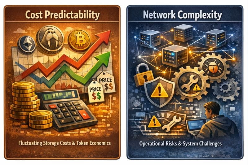 Thứ hai, khả năng dự đoán chi phí có thể gặp khó khăn. Trong khi Walrus được thiết kế để hiệu quả hơn so với lưu trữ trên chuỗi, các hệ thống phi tập trung vẫn phụ thuộc vào nhu cầu mạng, động lực của nút, và kinh tế token. Giá lưu trữ có thể dao động theo thời gian, điều này có thể là một mối quan tâm cho người dùng doanh nghiệp dài hạn.