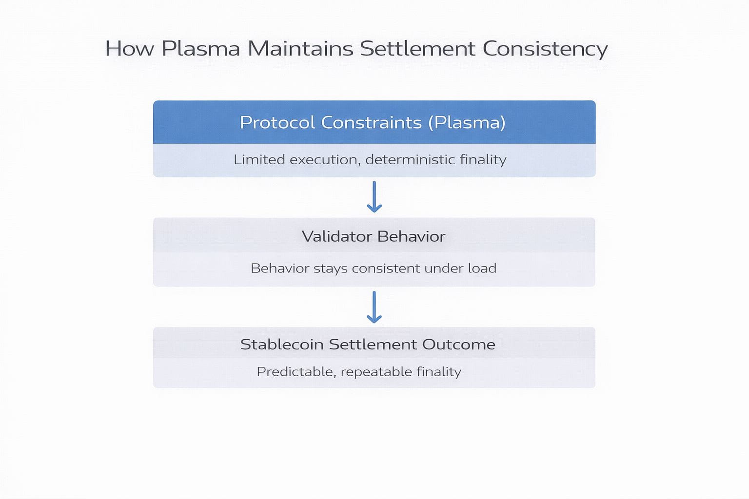Plasma giả định rằng việc sử dụng stablecoin sẽ lặp đi lặp lại và bền vững. Không phải là các đỉnh, không phải là các chu kỳ phấn khích, mà là các dòng chảy ổn định cần phải thanh toán chính xác mỗi lần. Dưới những điều kiện đó, tính linh hoạt trở thành một gánh nặng. Sự nhất quán trở thành ưu tiên.