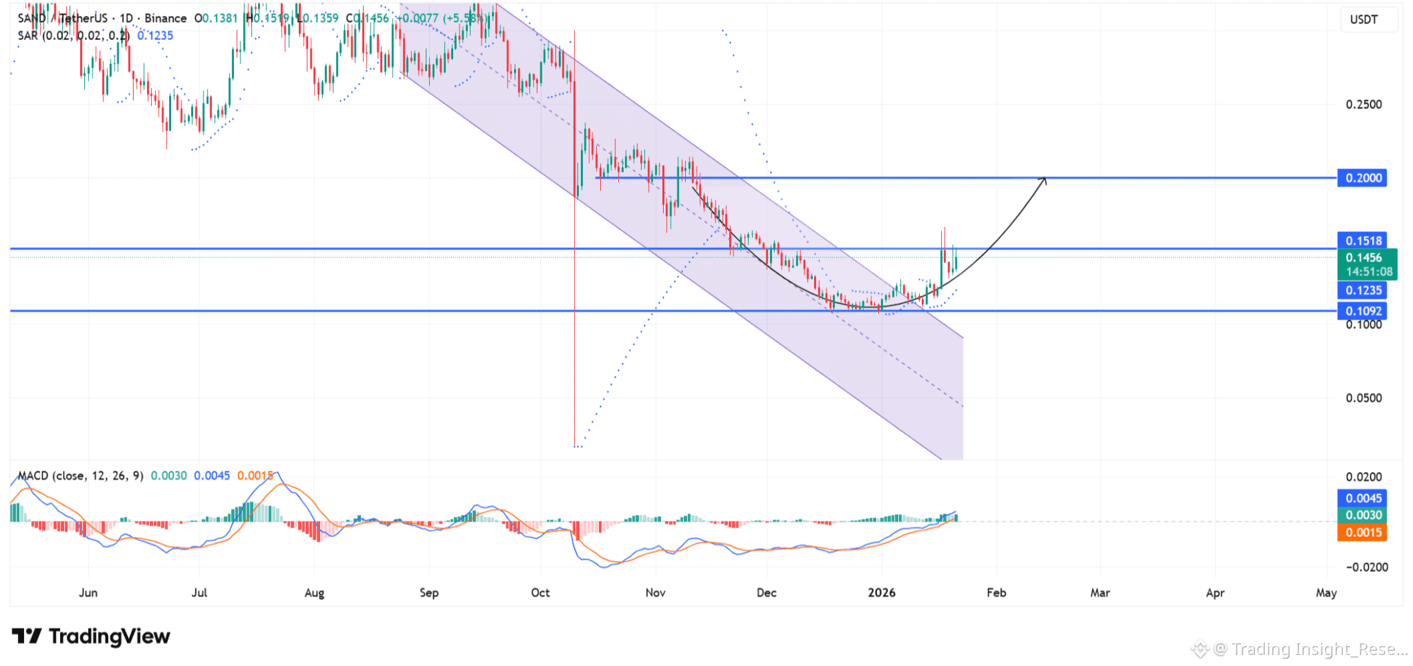 SAND đã phá vỡ dứt khoát kênh giảm giá kéo dài nhiều tháng, vô hiệu hóa cấu trúc giảm.