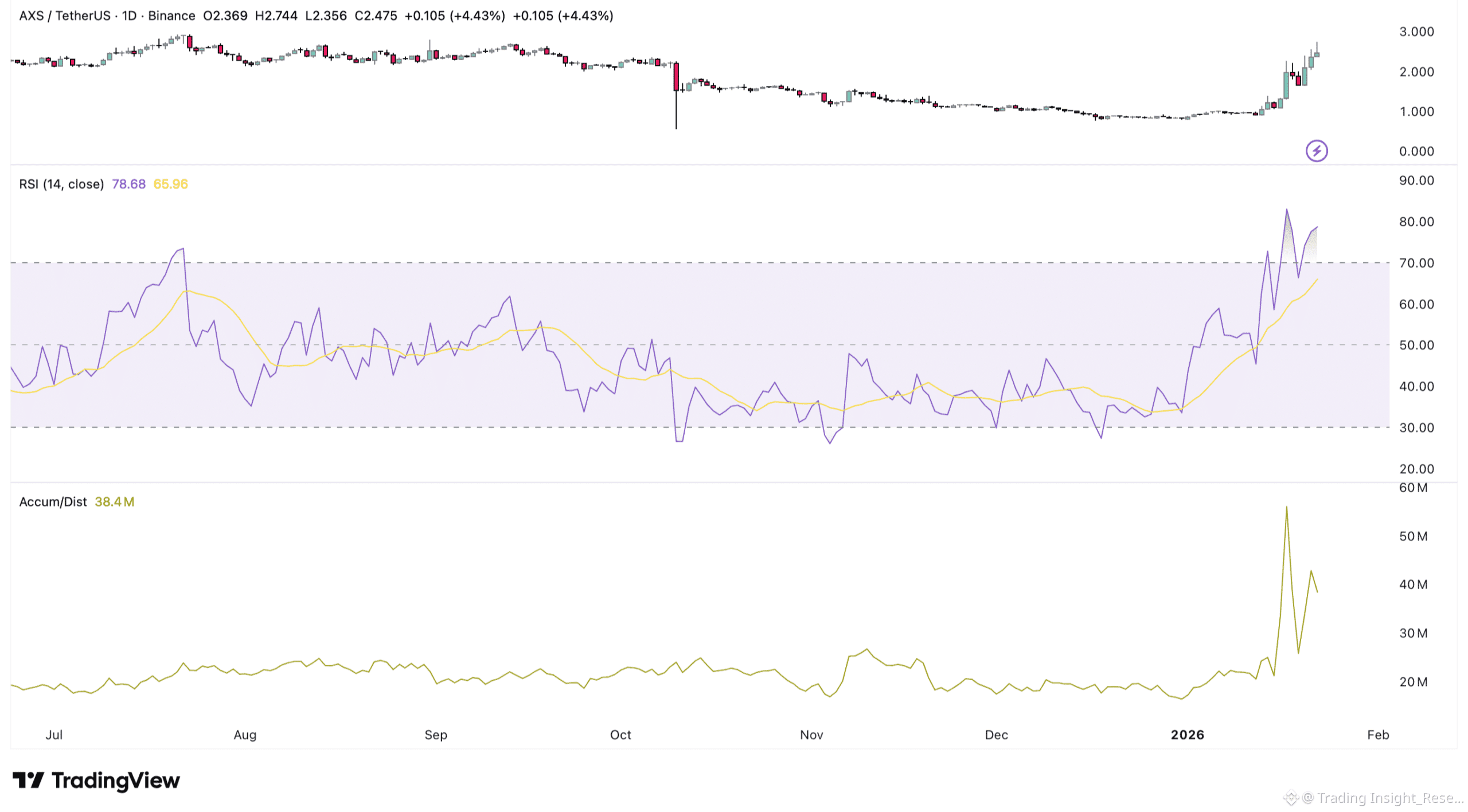 Funding của AXS đang âm (-0.12%) và RSI đã quá mua. Bạn sẽ chốt lời sau đợt rally này, hay đặt cược vào một cú short squeeze?