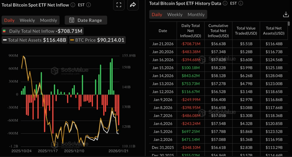 Theo kết quả của phiên giao dịch cuối cùng, các quỹ giao dịch trao đổi (ETF) tiền điện tử tại Mỹ đã mất $708,7 triệu. Đây là dòng vốn thoát ra lớn nhất trong hai tháng.