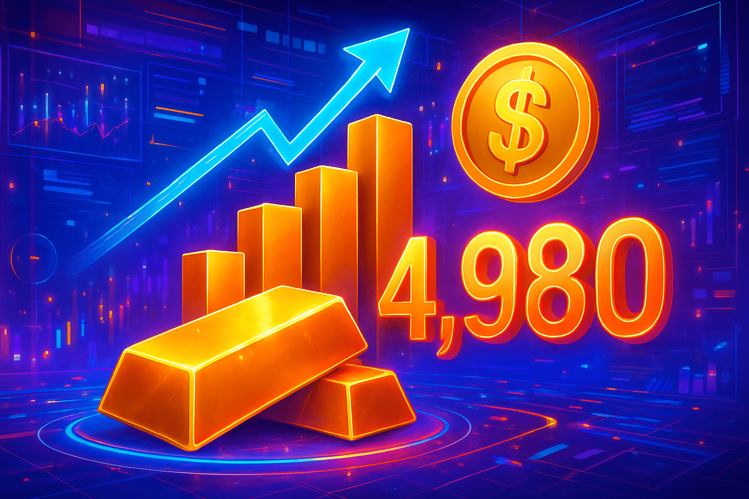 Giá vàng đã vượt 4.900 USD/ounce lần đầu tiên, trong khi vàng kỳ hạn ghi nhận 4.980 USD/ounce, phản ánh dòng tiền phòng thủ trước bất ổn địa chính trị, đồng USD suy yếu và kỳ vọng Fed hạ lãi suất.