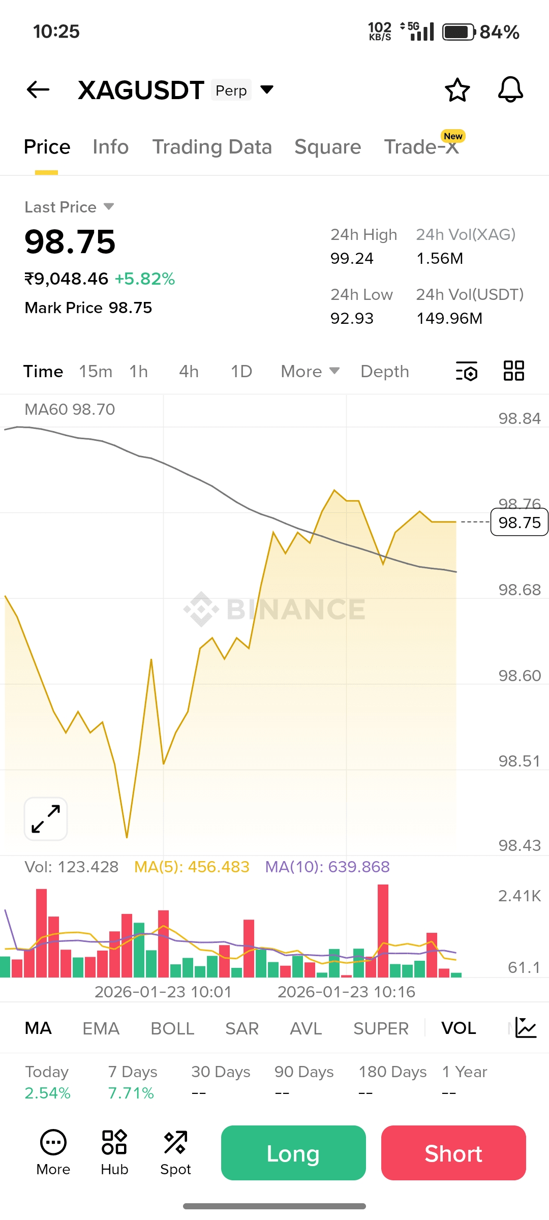 Bạc đang chiếm lấy ánh đèn với một đợt tăng mạnh mẽ hơn, giao dịch ở mức 98.75, tăng 5.82%!
