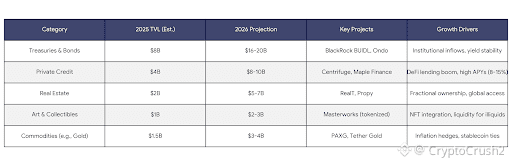 To visualize the growth, here's a table comparing key RWA categories and their 2025-2026 projections based on recent analyses: