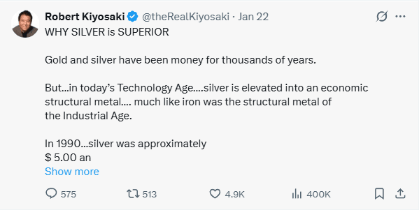 🔸 Mặc dù đã tăng lên $92, Kiyosaki vẫn kiên định với dự đoán rằng $XAG sẽ đạt $200/oz vào năm 2026. Ông khiêm tốn để ngỏ khả năng rằng ông có thể sai và đặt câu hỏi cho cộng đồng.