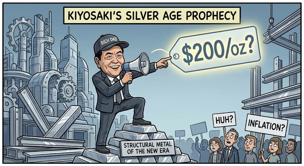 Tác giả huyền thoại của cuốn Rich Dad Poor Dad, Robert Kiyosaki, vừa đưa ra một đánh giá nặng nề về trạng thái Bạc trong thời đại công nghệ, đồng thời duy trì dự báo giá siêu lạc quan cho năm 2026.