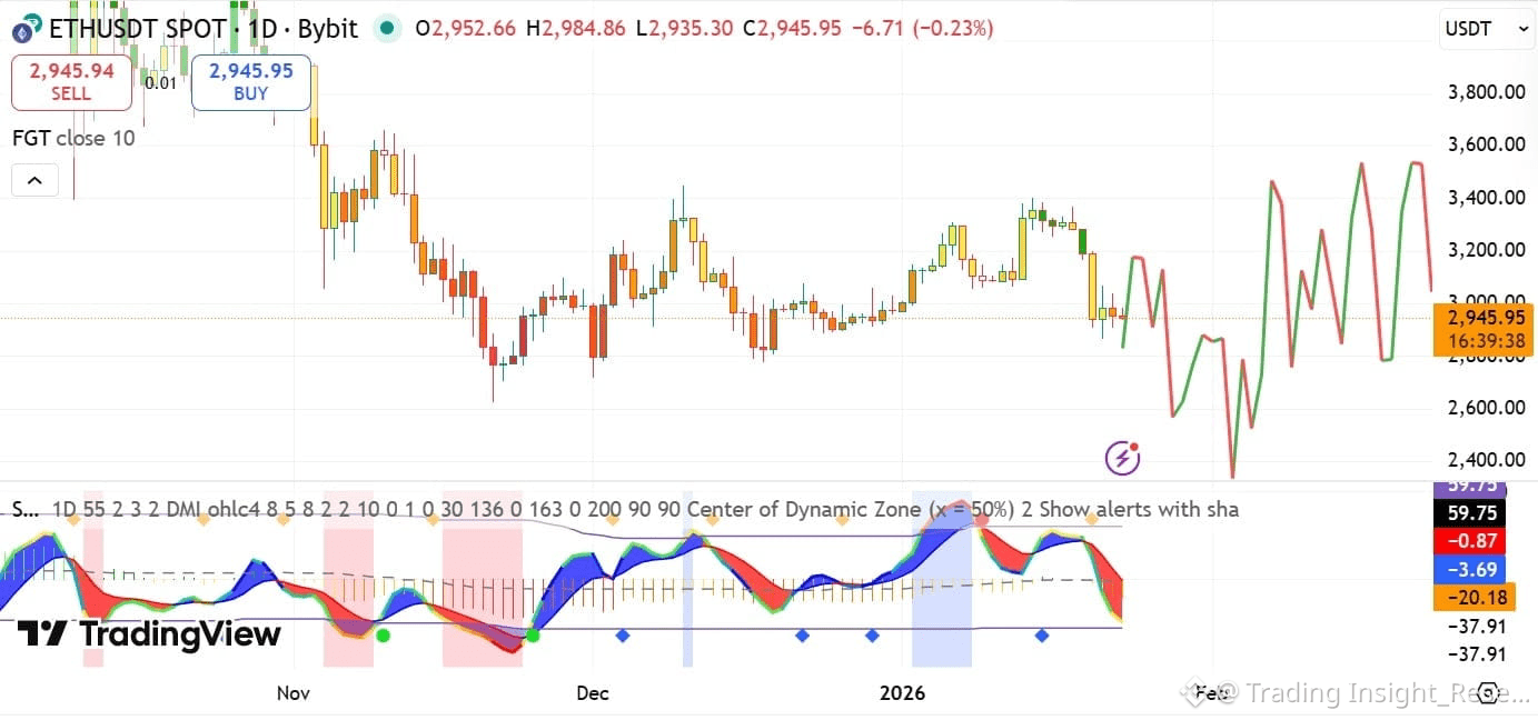 Nếu động lượng giảm áp đảo lực cầu này, ETH có thể thủng $2.8k và rớt về $2.5k trước khi có khả năng hồi phục lên $3.4k vào tháng 2.