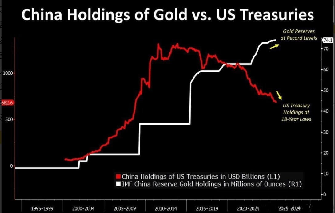 🔸 Bên cạnh việc bán trái phiếu, CN đang tăng cường $XAU dự trữ với tốc độ và quy mô đáng kể. Chiến lược này được mô tả là tăng cường để chuyển vốn vào kim loại quý.