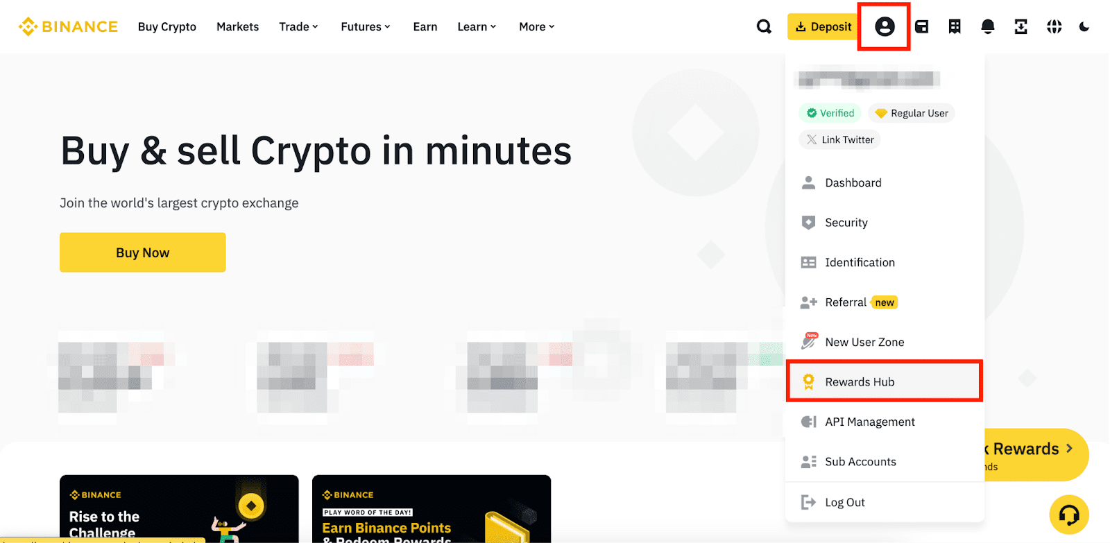 Mở mục Học & Kiếm trên Binance