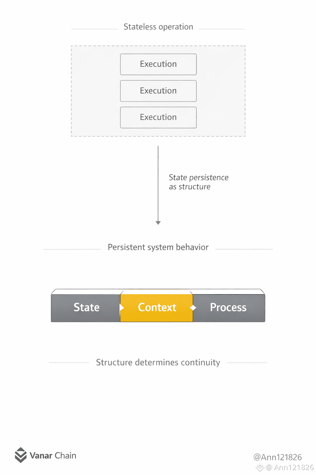 Cuando el estado persiste de forma nativa, el sistema deja de reaccionar de manera fragmentada y empieza a operar como un proceso continuo. Vanar Chain no busca impresionar con ejecuciones puntuales, sino sostener procesos reales donde el contexto importa tanto como la acción. Ese es el punto en el que la infraestructura deja de ser experimental y se vuelve verdaderamente operativa.