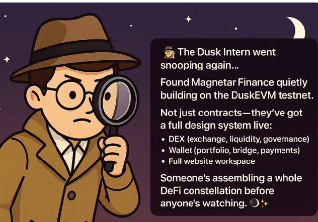 Thứ hai, những cái tên như Magnetar Finance không chỉ là ngẫu nhiên. Trong crypto, thương hiệu thường gợi ý hướng đi của câu chuyện. “Magnetar” gợi ý về sức hút, mật độ, tích lũy - loại phép ẩn dụ mà các dự án sử dụng khi họ đang nghĩ về cơ chế thanh khoản, kiến trúc lợi suất, hoặc hiệu quả vốn. Nó chưa xác nhận điều gì cả, nhưng đó là một chỉ báo mạnh mẽ rằng sự thử nghiệm đã xảy ra dưới bề mặt.