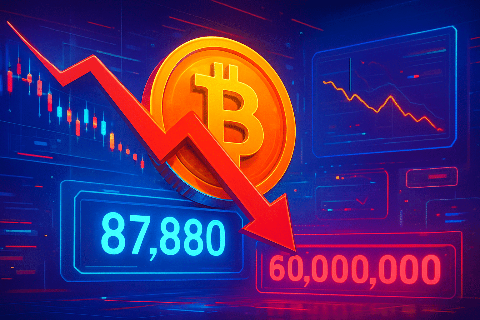 Bitcoin rơi về 87.880 USD, gây thanh lý hơn 60 triệu USD lệnh long đòn bẩy trong 30 phút.