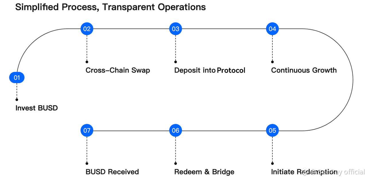 Cross-chain convenience: Deposit BUSD (BenFen's core asset, pegged 1:1 to USD, minted via USDT/USDC) to automatically convert to the target protocol's stablecoin and redeem cross-chain.