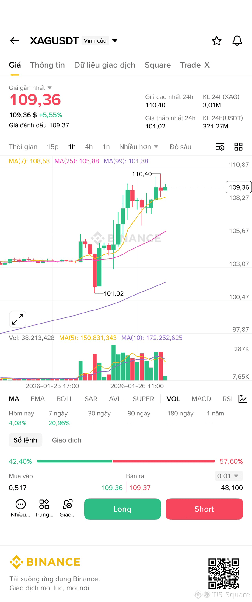 Thị trường kim loại quý đang chứng kiến những giây phút Điên rồ nhất lịch sử khi Bạc chính thức xô đổ mốc kháng cự $110 để thiết lập đỉnh cao mới.$XAG
