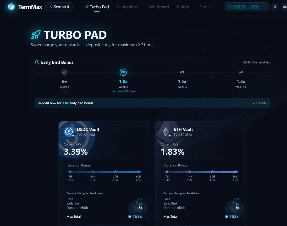 Nạp USDC hoặc WETH vào kho Turbo Pad, tham gia sớm để nhận được phần thưởng hợp nhất lớn nhất.