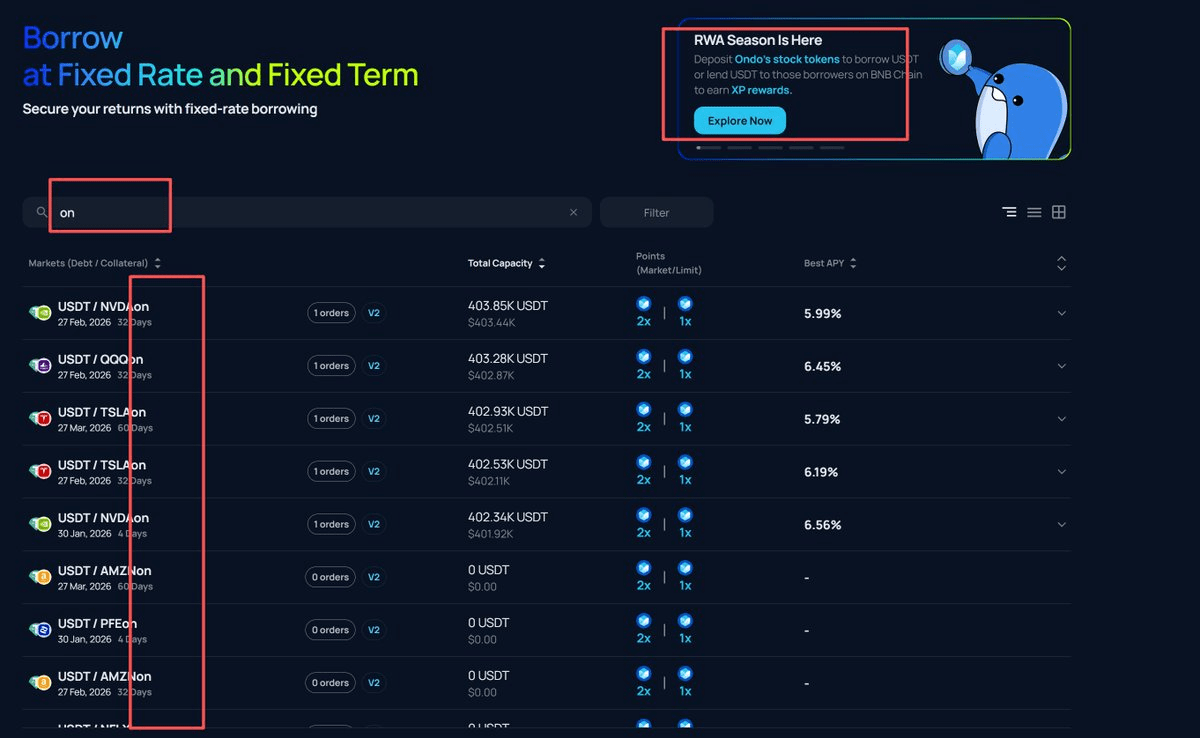 Tìm kiếm on, hậu tố có đuôi on là các token RWA liên quan đến ondo hỗ trợ chiến lược đăng ký đổi chác, trong khi thế chấp cổ phiếu token hóa bán quyền chọn mua để kiếm thêm lợi nhuận.