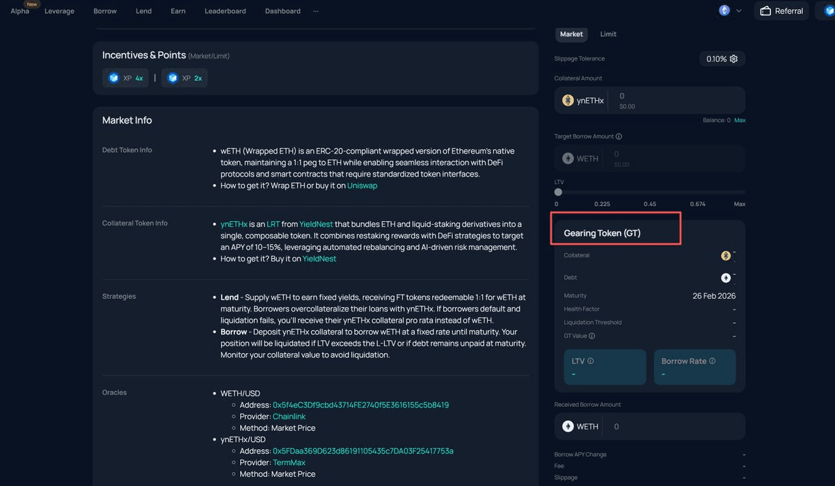 TermMax là giao thức vay AMM với lãi suất cố định thế hệ tiếp theo, hỗ trợ Ethereum, Arbitrum và BNB Chain, cung cấp dịch vụ đòn bẩy và vay lãi suất cố định không có rủi ro thanh lý. Đổi mới cốt lõi nằm ở việc đóng gói các chiến lược vòng phức tạp thành giao dịch token đơn giản, cho phép người dùng nhận được vị thế đòn bẩy với chi phí cố định.