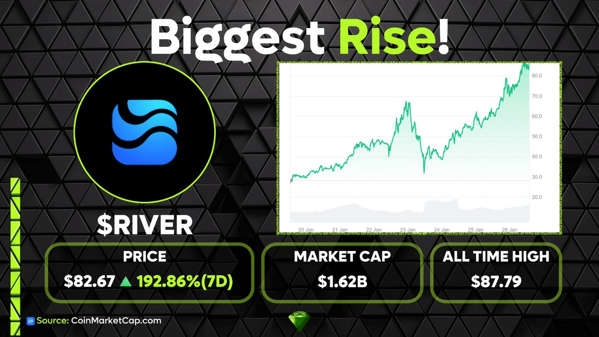 Các biểu đồ đang la hét! $RIVER vừa phá vỡ ngưỡng kháng cự trước đó để đạt được mức cao nhất mọi thời đại mới là $87.79. Nếu bạn đã giữ từ mức thấp $1.50 vào tháng 9, bạn đã tăng hơn 4.500%. 🤯