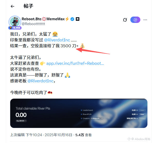 去年9月份的时候$RIVER 都夸这个项目大方有格局