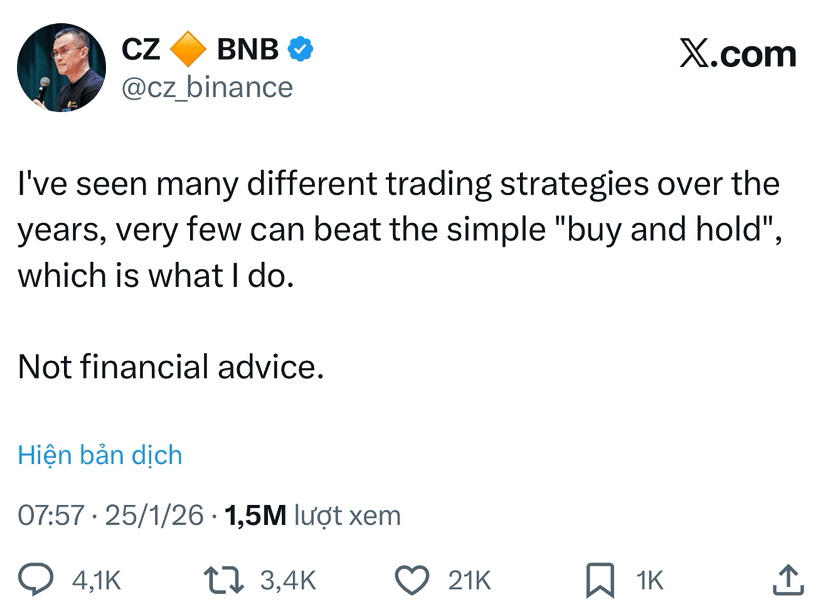 4️⃣ “Tôi đã thấy nhiều chiến lược giao dịch khác nhau trong suốt những năm qua. Rất ít có thể đánh bại chiến lược ‘mua và giữ’ đơn giản. Đó là chiến lược tôi sử dụng.”