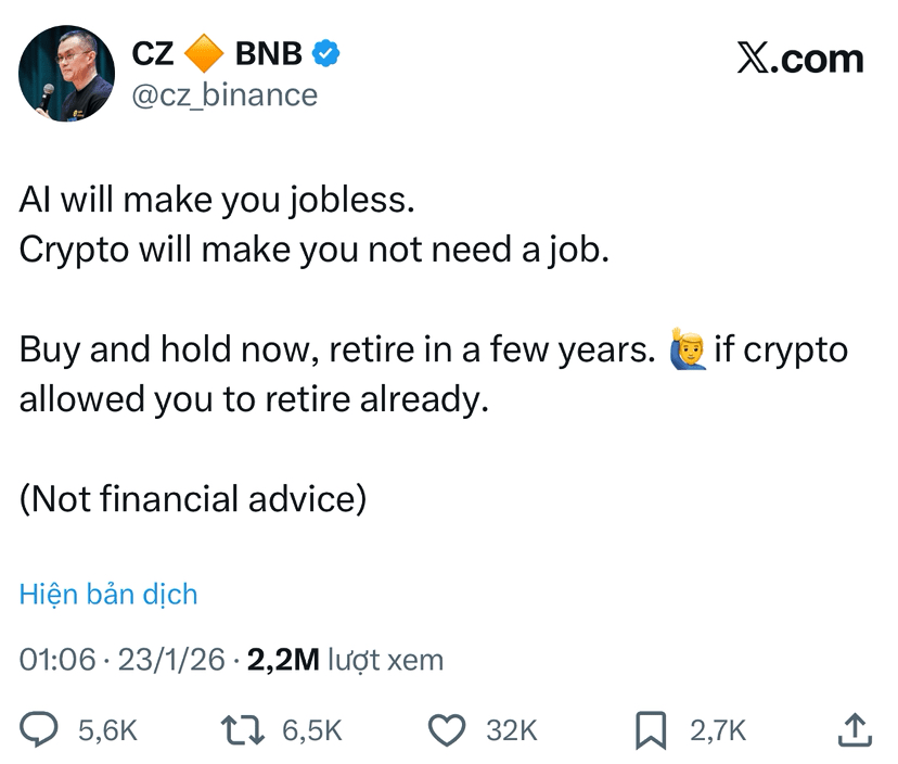 3️⃣ Một bài viết từ CZ về tiền điện tử và nghỉ hưu: