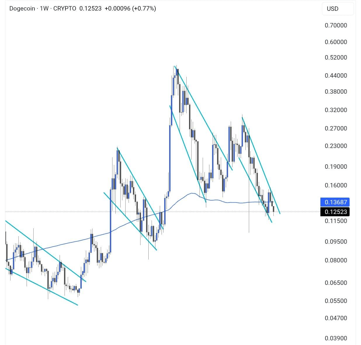 Nhìn vào $DOGE trên biểu đồ hàng tuần, cấu trúc vẫn khá rõ ràng.