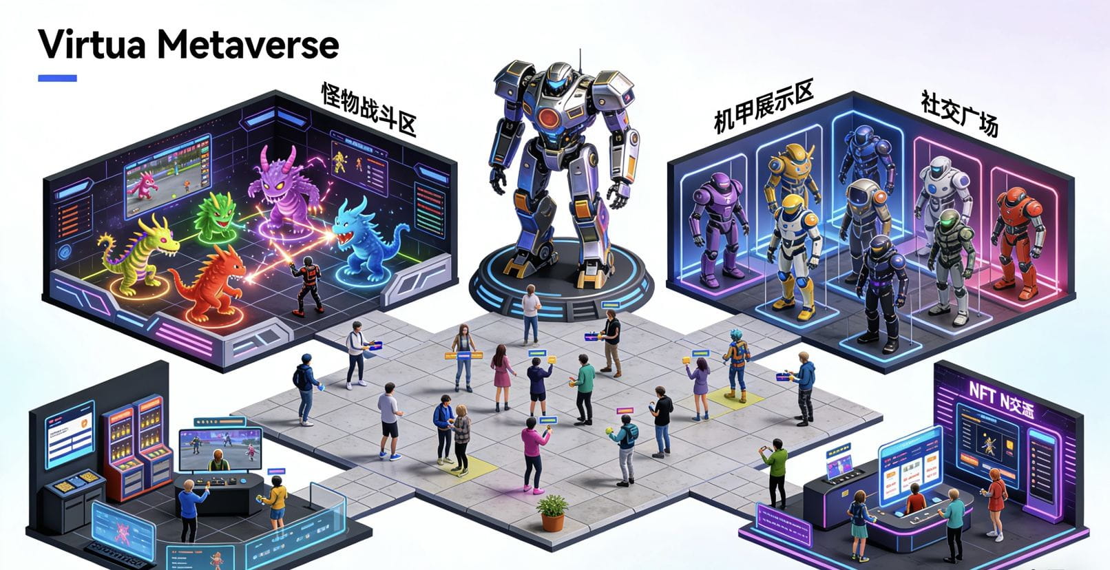 Vanar Chain的核心团队拥有超过10年的游戏、VR、AR、元宇宙领域经验,对游戏和娱乐行业的痛点有着深刻的理解,这也让其在生态布局上更加精准。目前VANRY生态已经接入了Virtua Metaverse和VGN游戏网络两大核心板块,Virtua Metaverse是一个多元化的元宇宙平台,用户可以在其中玩游戏、交易游戏资产NFT、购买虚拟土地、进行社交互动,平台还打造了怪物、机甲、战场等多个特色体验区,为用户提供了丰富的元宇宙体验;VGN游戏网络则为游戏开发者提供了灵活的部署方案,吸引了大量传统游戏开发者和Web3游戏开发者入驻。