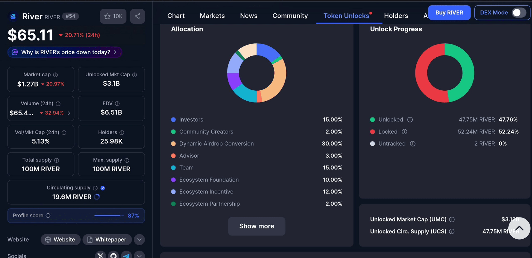 $RIVER đang bước vào một giai đoạn nhạy cảm với nguồn cung.