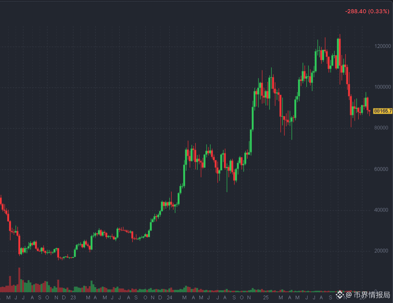 虽然 2025 年目前录得 7% 的跌幅(历史上罕见的连续两年修正),但只要能守住 $80k 关口,这可能只是牛市中的一次深度清洗。