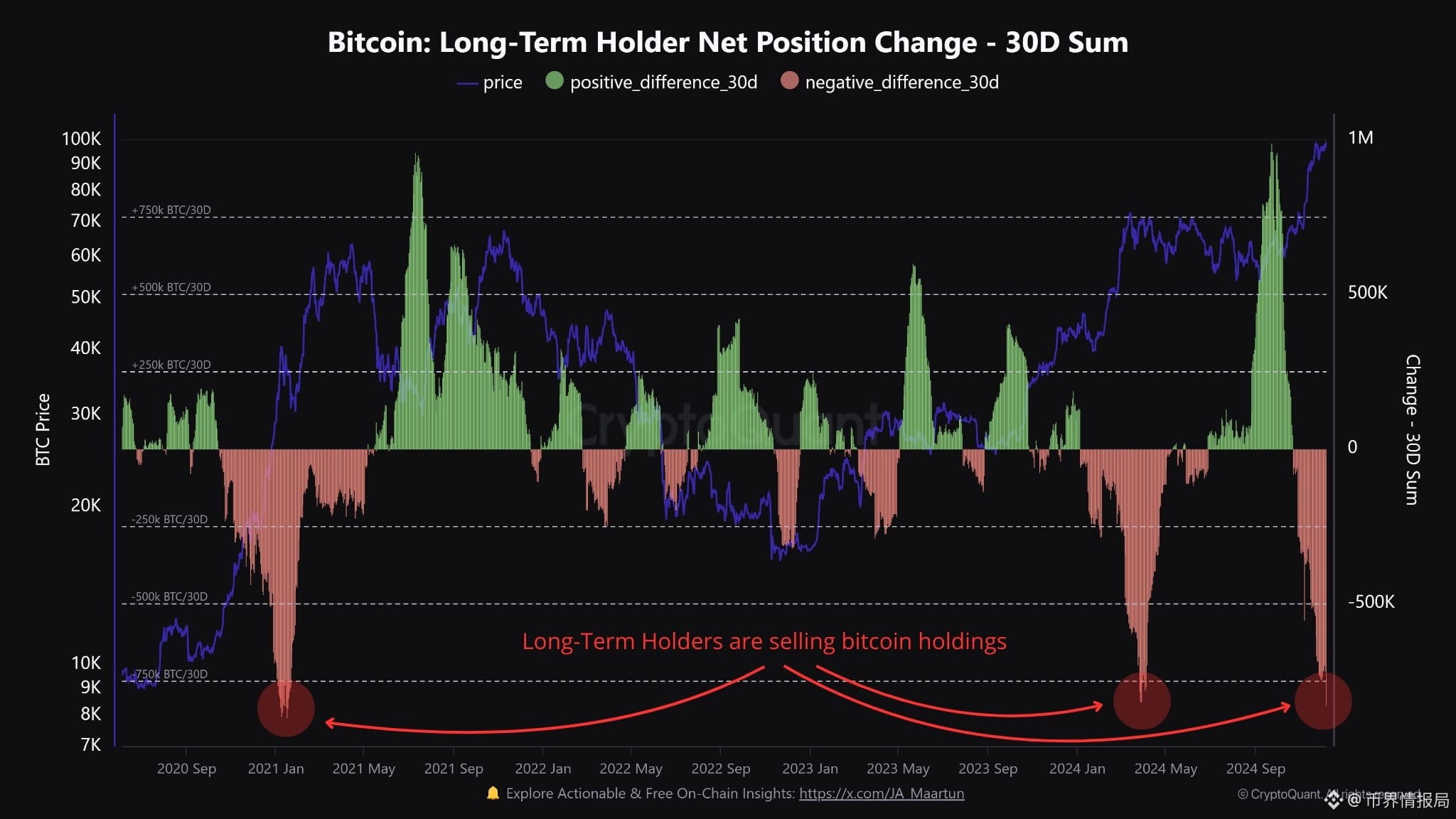 - 卖方:持有 2 年以上的 OG 鲸鱼在 2024-2025 年期间持续减仓。这是一种系统性的获利了结,而非恐慌抛售。