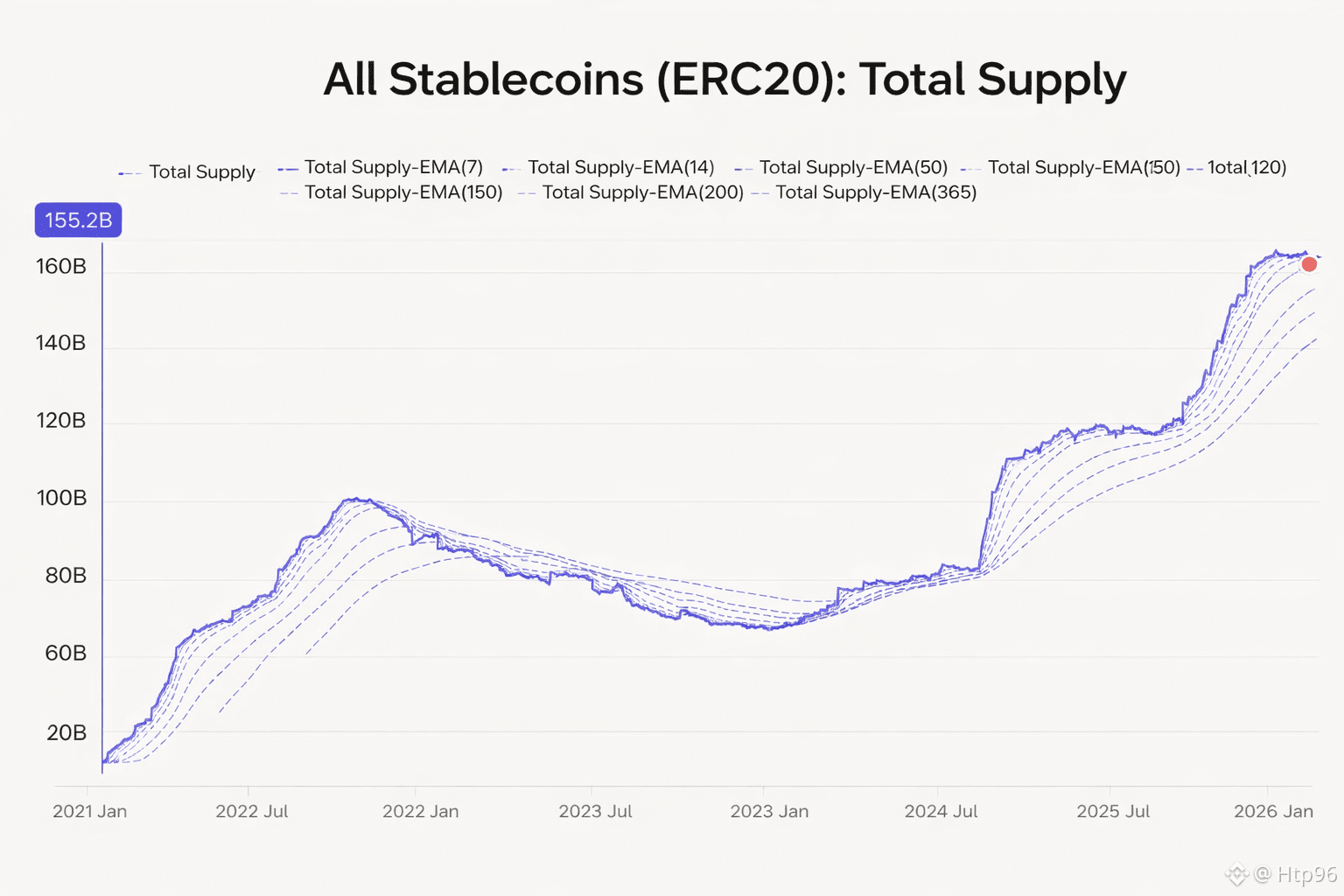Mình đang để ý một tín hiệu khá đáng lo: vốn hóa thị trường của stablecoin đang co lại.