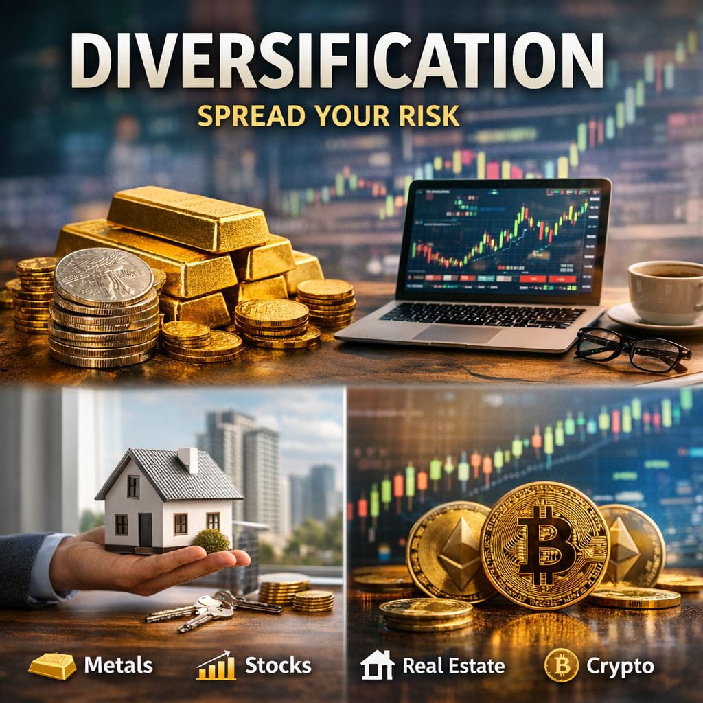□ Diversification isn’t about maximizing profits in one investment; it’s about reducing overall risk and creating balance. A well-diversified portfolio across stocks, metals, cryptos, bonds, and other assets can be strong in market fluctuations while providing steady growth and financial security. For investors at any level, diversification is a key principle to long-term financial success.