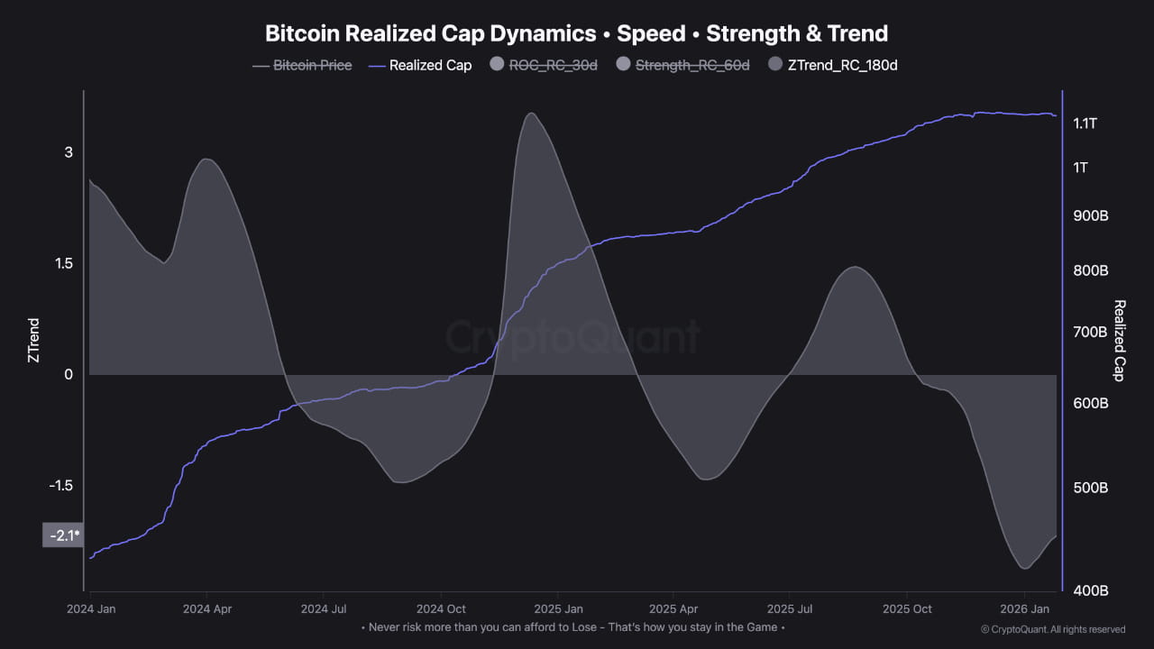 Giá trị thực hiện vẫn ổn định, cho thấy rằng vốn không thoát khỏi hệ thống. Tuy nhiên, cả tỷ lệ thay đổi và xu hướng Z-Score đều đã chuyển sang tiêu cực. Sự kết hợp này phản ánh sự chậm lại trong việc hình thành vốn mới, không phải là áp lực do thanh lý.