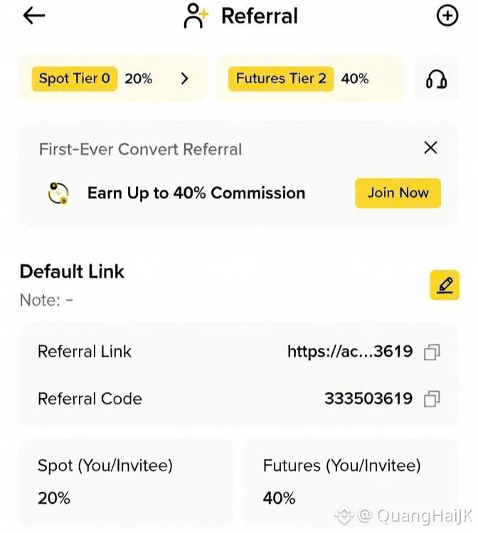 Đừng lo! Với chương trình hoàn phí (rebate/cashback) lên đến 40% Futures20% Spot, bạn có thể giảm đáng kể chi phí giao dịch, giữ lại nhiều tiền hơn trong túi mỗi ngày.Đây là 1 vinh dự rất lớn khi @QuangHaiJK sẽ làm đối tác hoàn phí lên đến 40% futures và 20% spot cho anh em .
