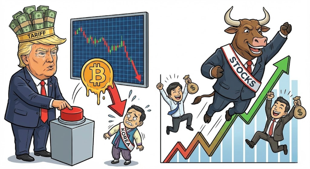 Thị trường tài chính Hàn Quốc đang chứng kiến một cuộc di cư vốn lịch sử ngay sau thông báo về mức thuế nghiêm ngặt của Trump, tạo ra sự phân kỳ lớn giữa hai kênh đầu tư rủi ro.