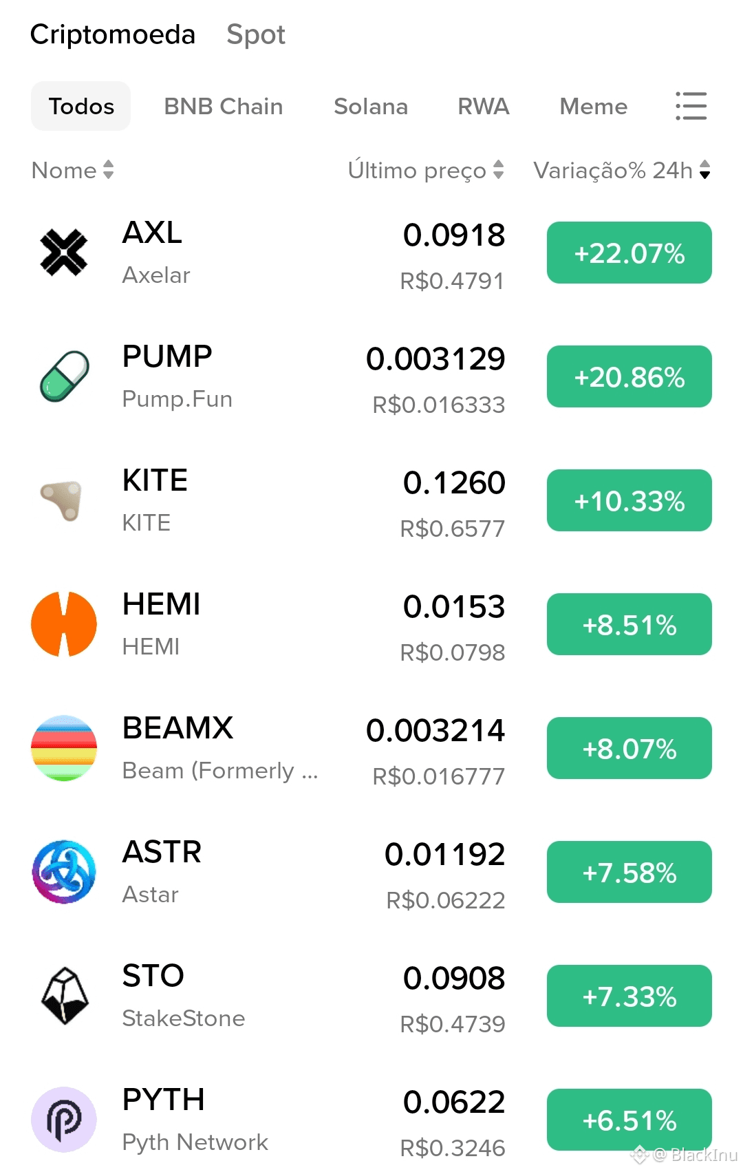 - AXL (Axelar): Lidera as altas com +22,07%, negociada a R$ 0,4791.