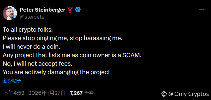 The Warning: Steinberger warned that any project claiming he is an owner or affiliate is a scam. His GitHub account was reportedly hijacked by crypto scammers attempting to legitimize these fake tokens.