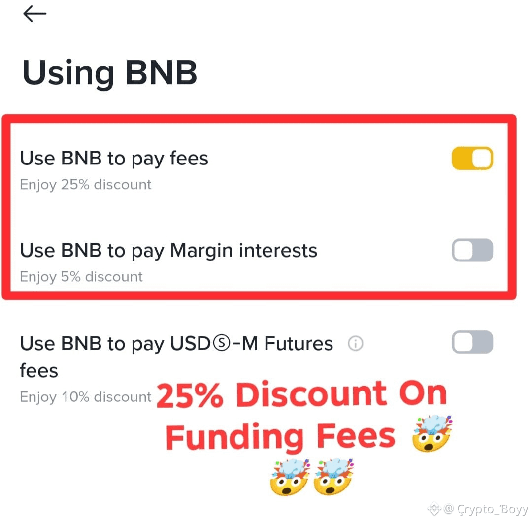 There’s also an extra hidden step 🔥: go into your Binance settings and turn on the option to pay fees with BNB (Spot). This gives you an automatic fee discount working quietly in the background.