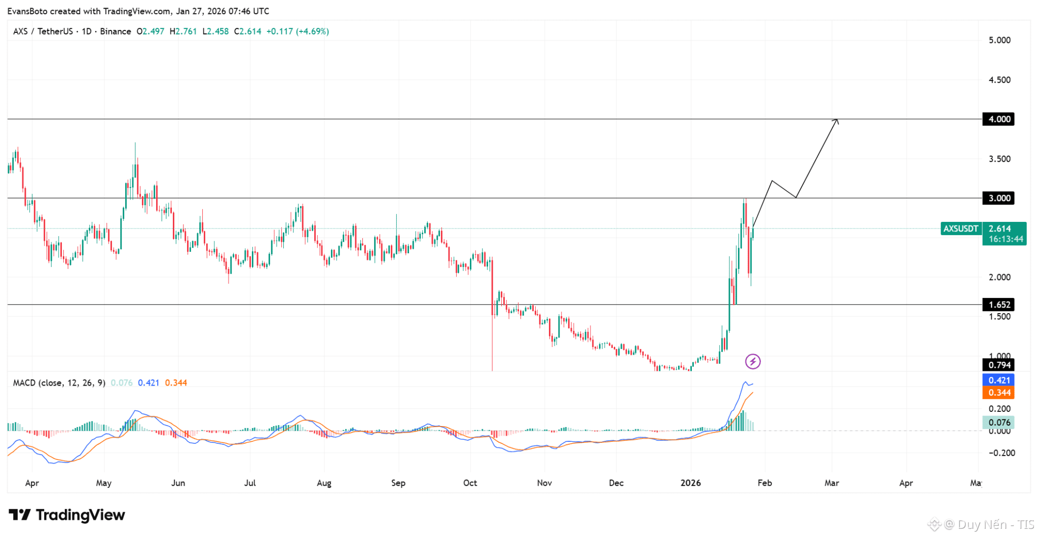 Theo anh em thì $AXS sẽ đục thủng 3 đô ngay trong tuần này hay sẽ quay lại test 2.6 đô?