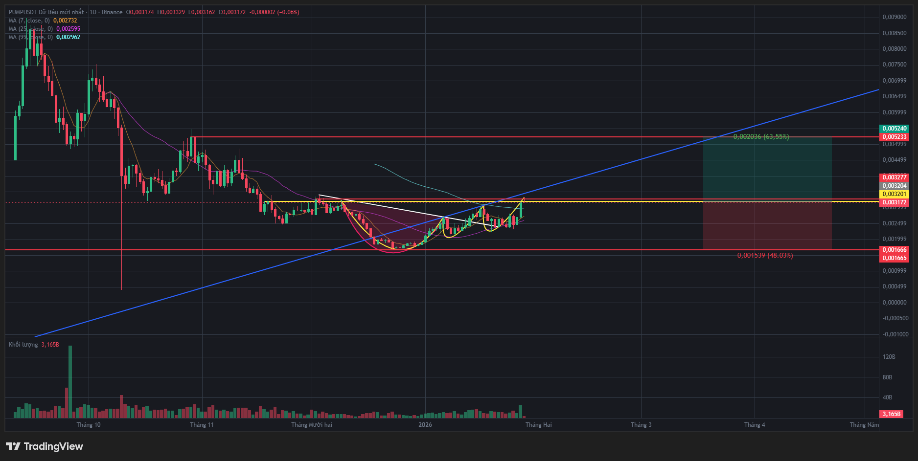 $0.0032: nếu giá vượt và giữ vững trên vùng này, khả năng cao PUMP sẽ mở ra nhịp tăng tiếp theo