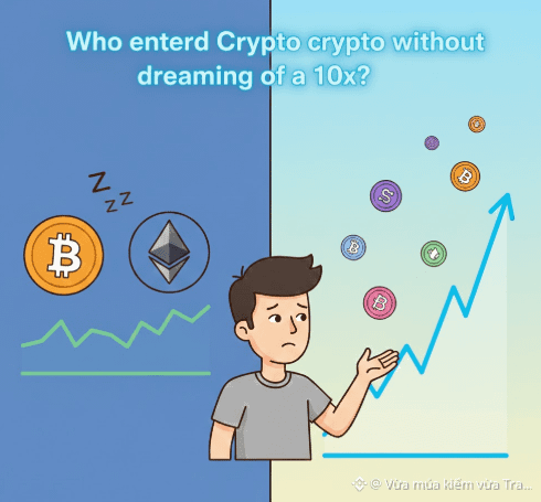 Thực tế là đã bước chân vào Crypto, mấy ai vào đây để làm giàu chậm. Ai cũng từng mơ kèo x10, x20, thậm chí x50. Ai cũng muốn tài khoản đổi đời sau vài con sóng, chứ ít người đủ kiên nhẫn ngồi ôm coin chờ 5–10 năm như đầu tư truyền thống. Crypto ngay từ đầu đã là nơi của tốc độ, của kỳ vọng lớn và cả lòng tham mà ai cũng có, chỉ là nhiều hay ít.