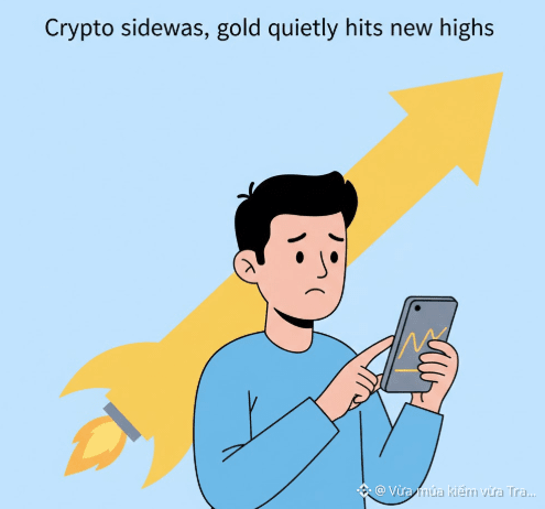 Nhưng rồi năm 2025 lại cho một bài học khá đau. Ngay cả BTC, ETH hay SOL cũng không chạy được bao nhiêu. Thị trường lình xình, thanh khoản thấp, narrative đổi liên tục. Trong lúc đó, quay sang nhìn vàng thì thấy nó tăng đều, tăng mạnh, tăng trong sự nghi ngờ của cả cộng đồng Crypto.