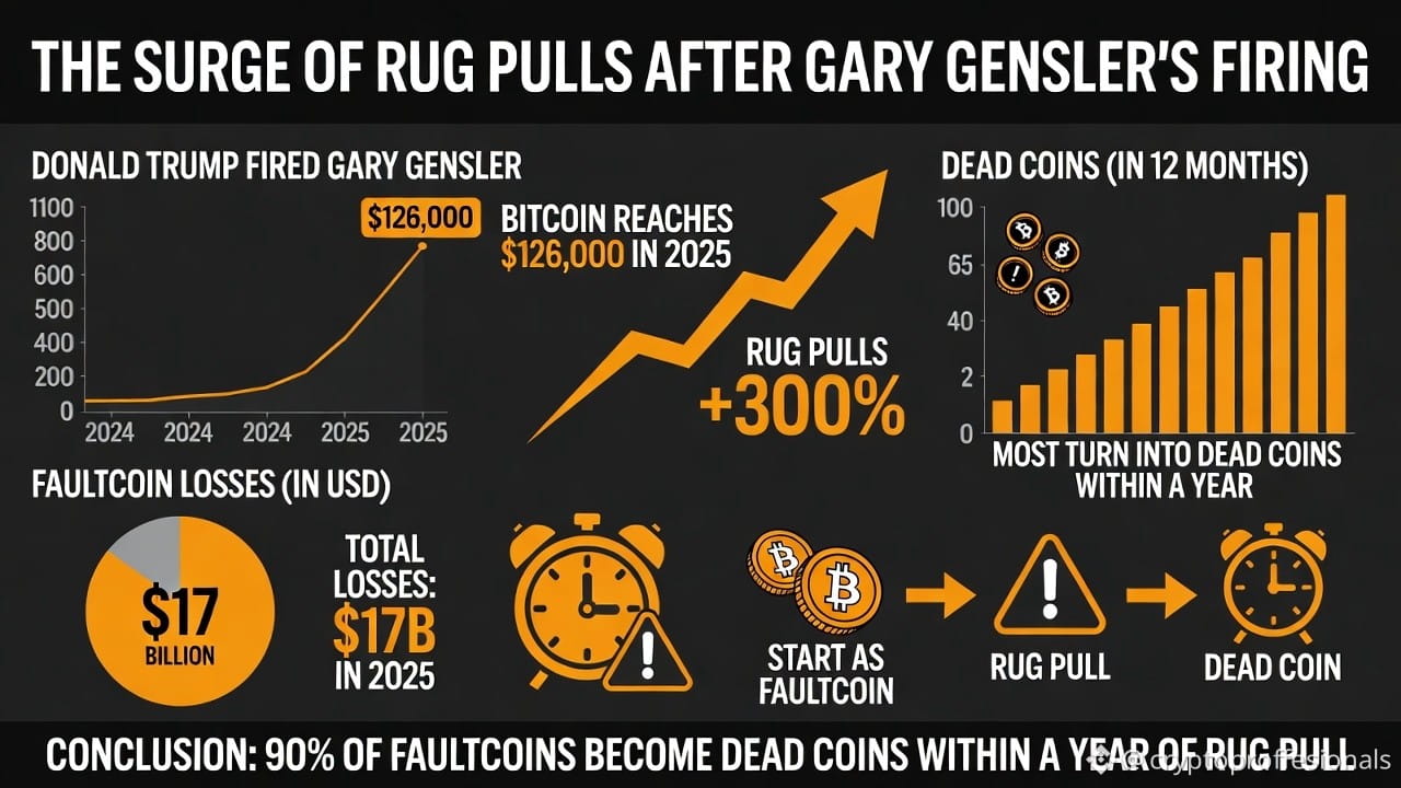 As 2026 dawns amid a crypto winter, the legacy is clear: Firing Gensler didn't just boost innovation—it buried thousands of faultcoins in rugs, leaving investors reeling from a year of unchecked demise.